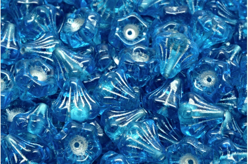 フラワーベルビーズ、クリスタル透明アクアシルバーライン(00030-60040-54301)、ガラス、チェコ共和国