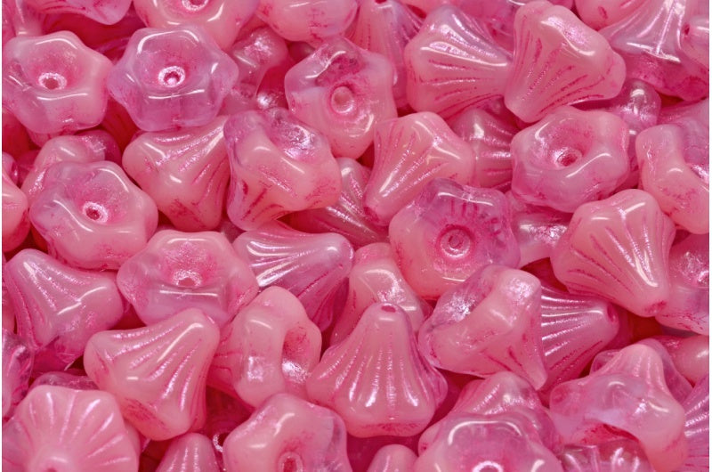フラワーベルビーズ、透明ライトアメジストオパールピンクピンクライン(20210-72010-54321)、ガラス、チェコ共和国