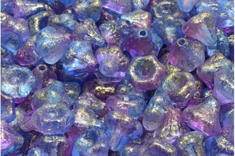 フラワーベルビーズ、クリスタルエッチングブルーバイオレット56902(00030-etch-48002-56902)、ガラス、チェコ共和国