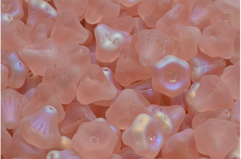 フラワーベルビーズ、透明ピンクマットAB(70110-84100-28701)、ガラス、チェコ共和国