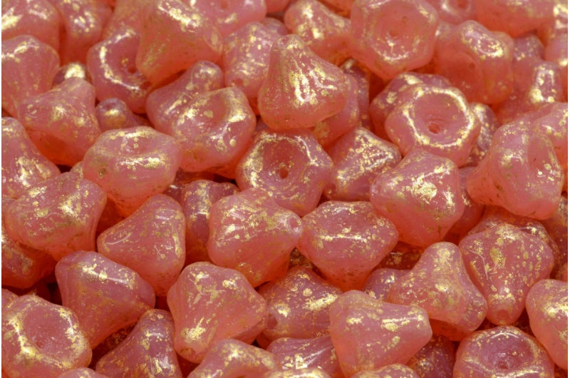 フラワーベルビーズ、オパールピンクゴールドスプラッシュ(71010-94401)、ガラス、チェコ共和国
