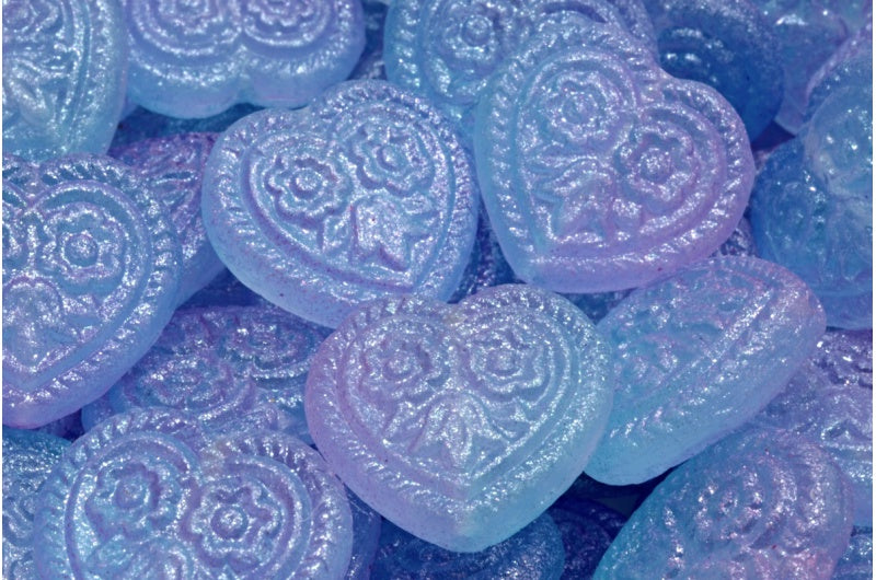 フォークロアの花のビーズが入ったハート、クリスタルブルー(00030-542003)、ガラス、チェコ共和国