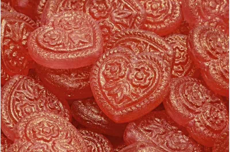フォークロアの花のビーズ付きハート、クリスタルレッド(00030-542011)、ガラス、チェコ共和国