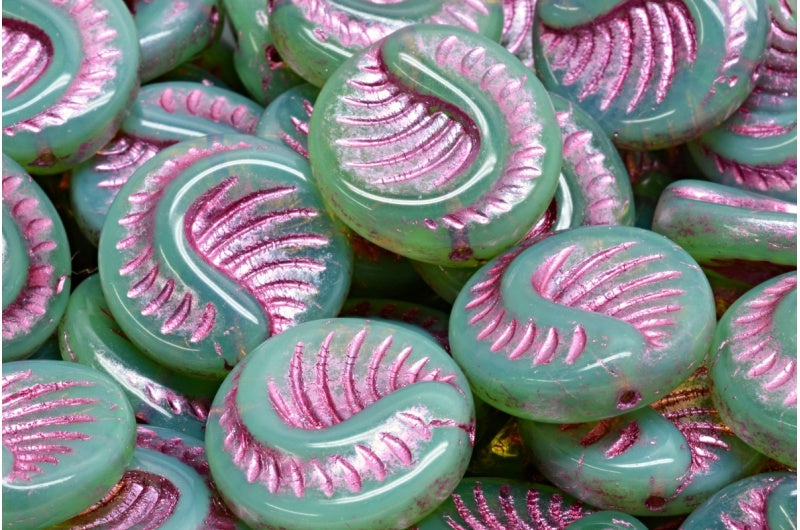 化石コインビーズ、51111 ピンクライン (51111-54321)、ガラス、チェコ共和国