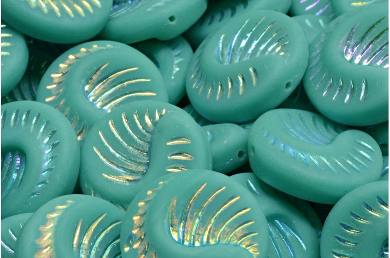化石コインビーズ、ターコイズアブフル(2Xサイド)マット(63130-28703-84100)、ガラス、チェコ共和国