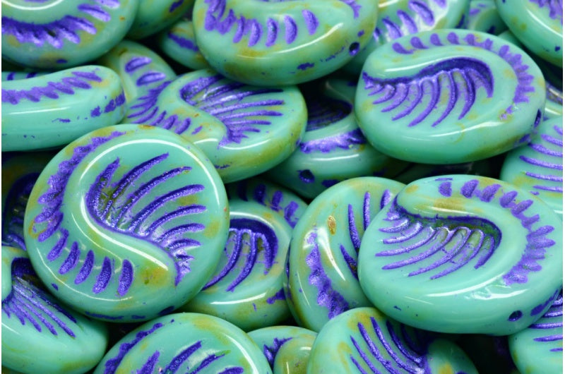 化石コインビーズ、ターコイズトラバーチン 43810 (63130-86800-43810)、ガラス、チェコ共和国