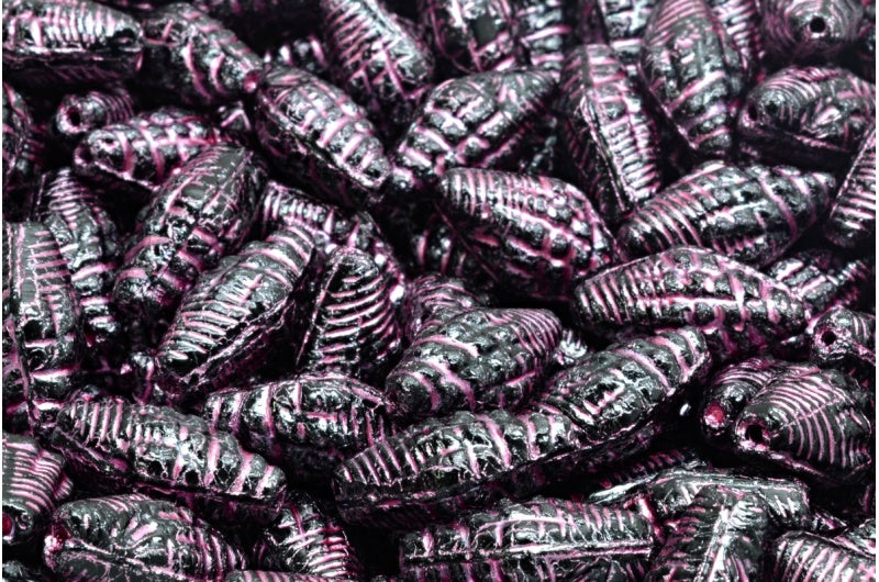 マイターシェルビーズ、ブラックピンクライン(23980-54321)、ガラス、チェコ共和国