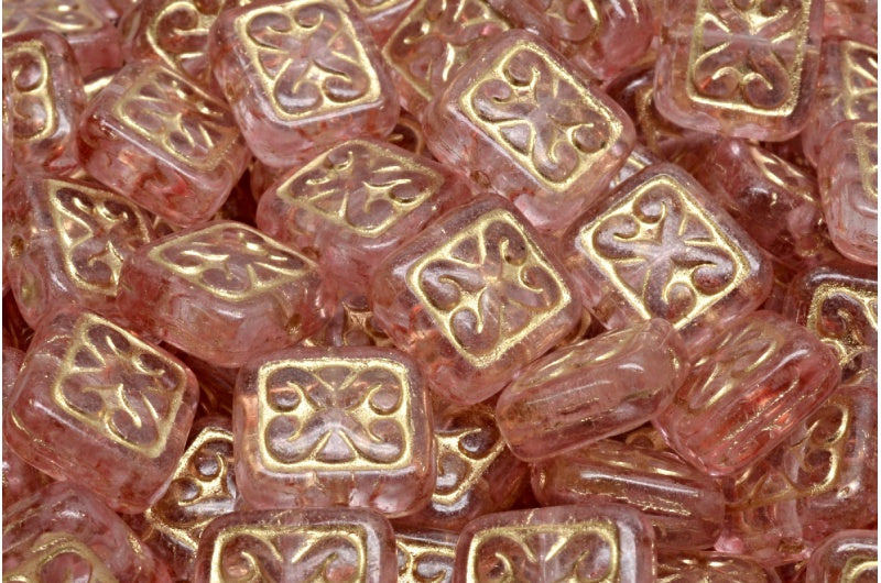 装飾クッションビーズ、クリスタルゴールドライン入りライトピンク(00030-54302-34304)、ガラス、チェコ共和国