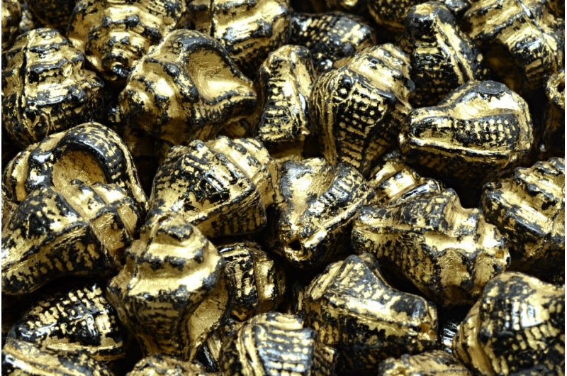 ミュレックスシェルビーズ、ブラックゴールドライン(23980-54302)、ガラス、チェコ共和国