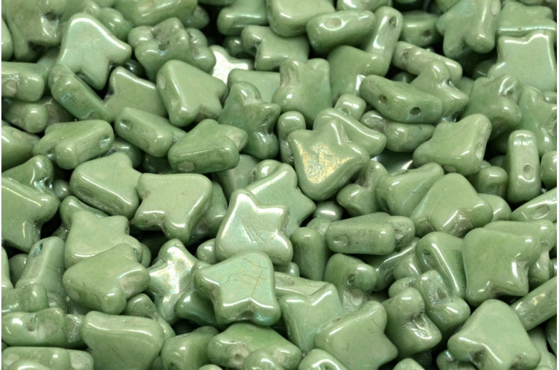 2穴フラットチューリップベルビーズ、ホワイトラスターグリーンフルコーティング(02010-14459)、ガラス、チェコ共和国