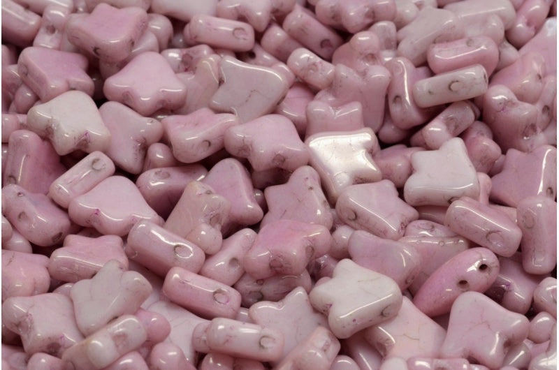 2穴フラットチューリップベルビーズ、ホワイトオパールラスターリラ(02020-14494)、ガラス、チェコ共和国