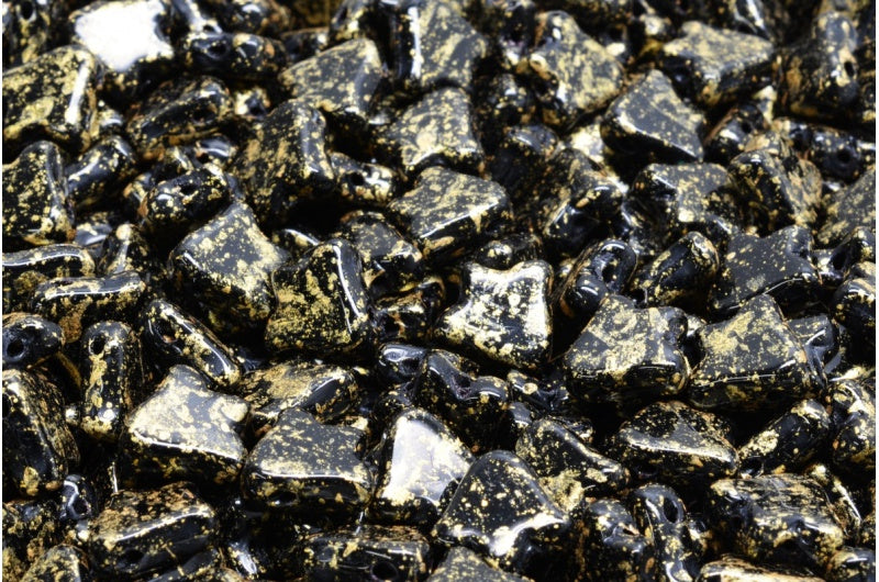 2穴フラットチューリップベルビーズ、ブラックゴールドスプラッシュ(23980-94401)、ガラス、チェコ共和国