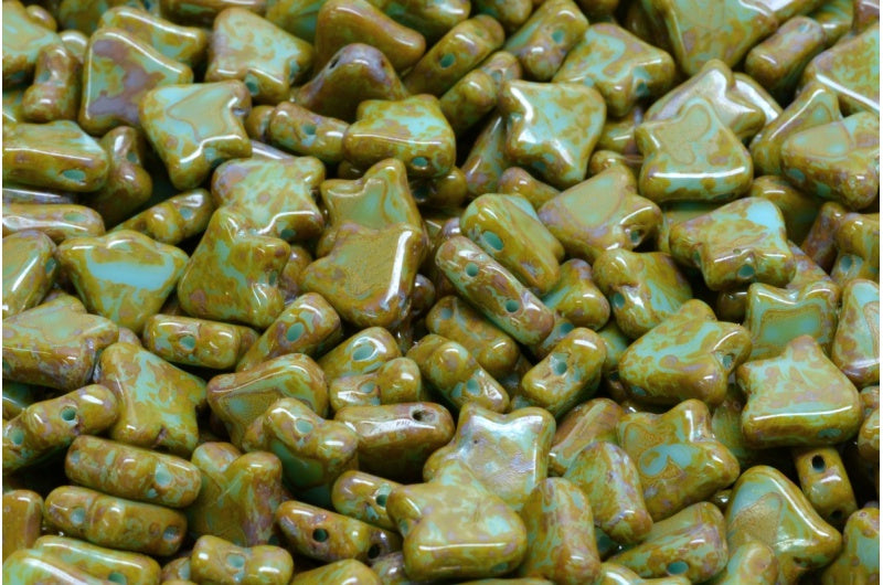 2穴フラットチューリップベルビーズ、ターコイズブルーステインストロング(63030-86805)、ガラス、チェコ共和国