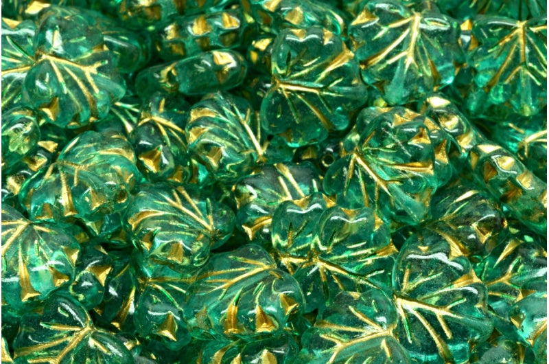 メープルリーフビーズ、クリスタルゴールドラインライトターコイズ(00030-54302-34309)、ガラス、チェコ共和国