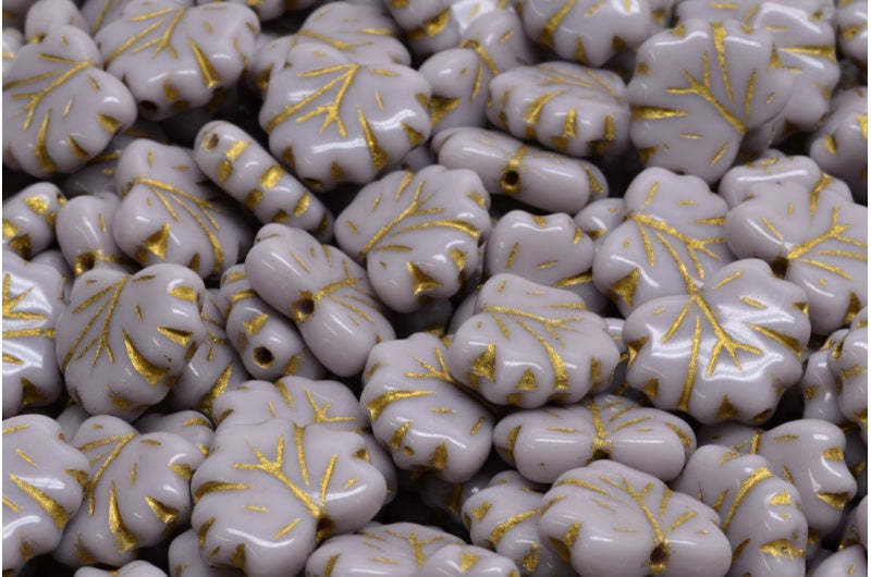 メープルリーフビーズ、不透明アメジスト、ゴールドライン(23010-54202)、ガラス、チェコ共和国