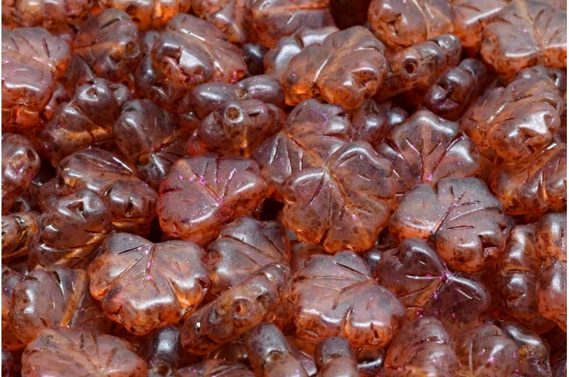 メープルリーフビーズ、クリスタルマットピンクベージュラスタースポット(00030-84100-65323)、ガラス、チェコ共和国