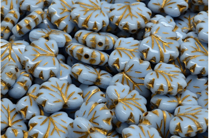 メープルリーフビーズ、ライトブルー、ゴールドライン(33000-54202)、ガラス、チェコ共和国
