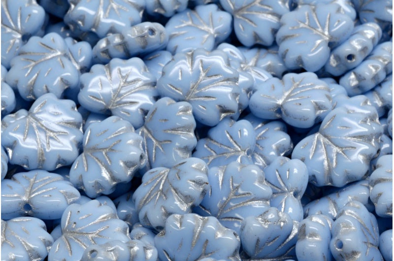 メープルリーフビーズ、ライトブルー、シルバーライン(33000-54301)、ガラス、チェコ共和国