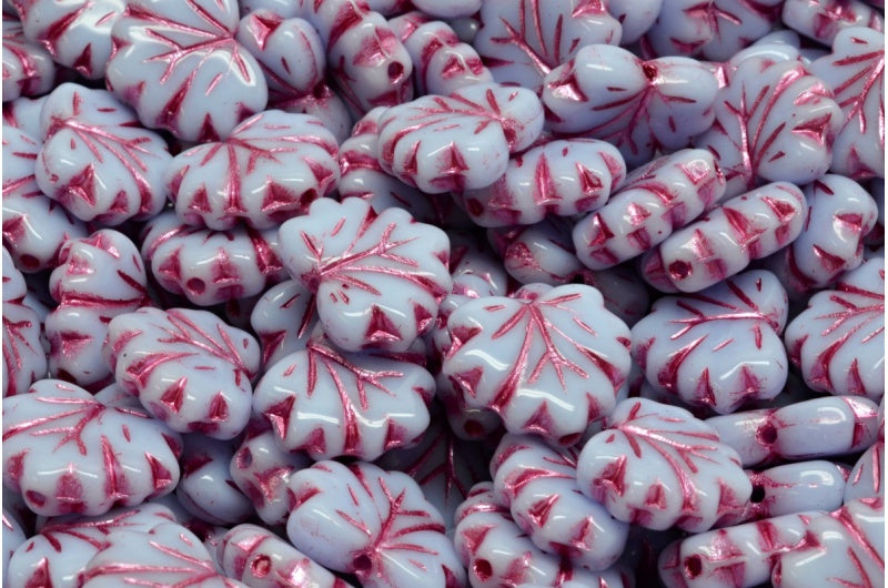 メープルリーフビーズ、ライトブルーピンクのライン入り(33000-54321)、ガラス、チェコ共和国