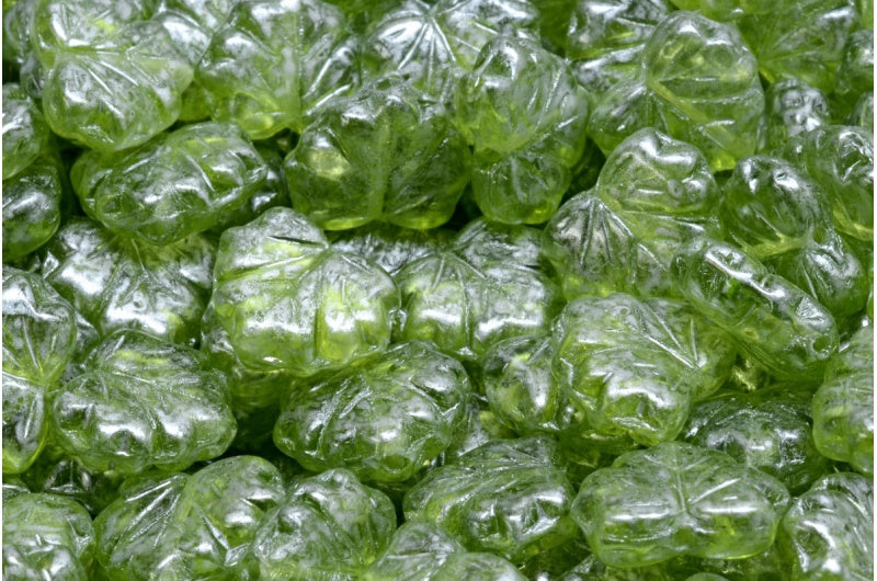 メープルリーフビーズ、透明グリーン 86700 (50220-86700)、ガラス、チェコ共和国