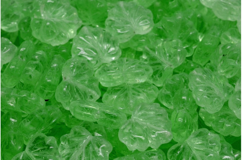 メープルリーフビーズ、透明グリーン(50500)、ガラス、チェコ共和国
