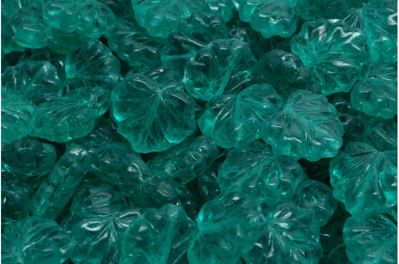 メープルリーフビーズ、透明アクア(60220)、ガラス、チェコ共和国