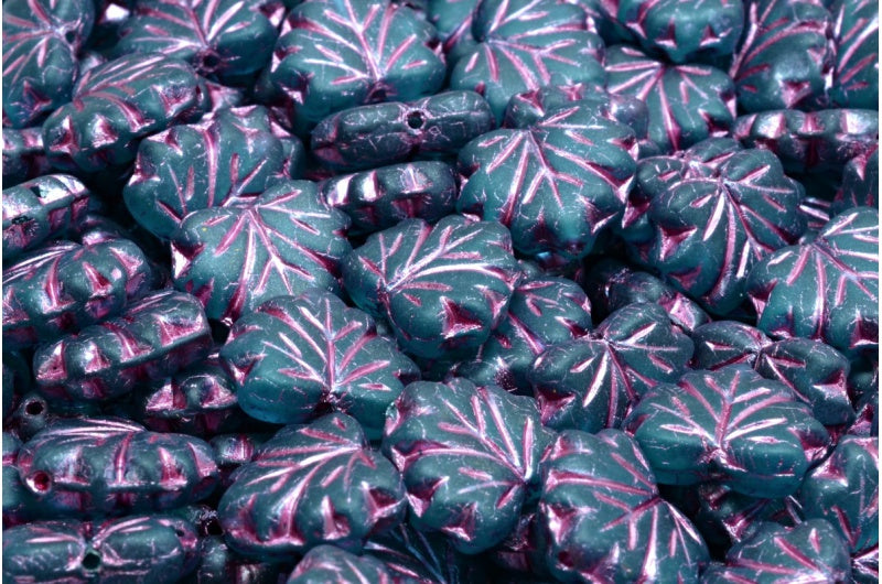 メープルリーフビーズ、透明アクアピンク裏地マット(60220-54321-84100)、ガラス、チェコ共和国