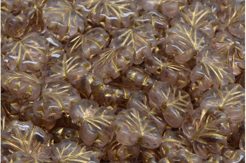 メープルリーフビーズ、透明ピンクゴールドライン(70120-54302)、ガラス、チェコ共和国