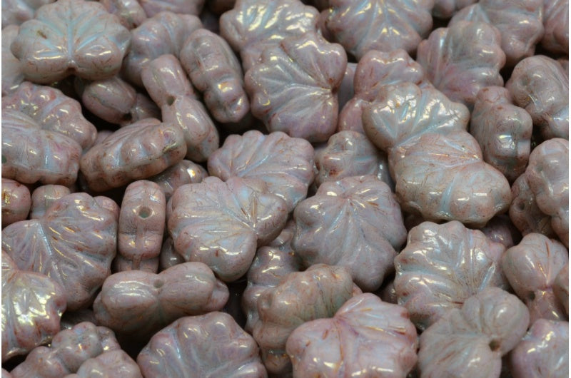 メープルリーフビーズ、ライトグリーンラスターレッドフルコーティング(07524-14495)、ガラス、チェコ共和国
