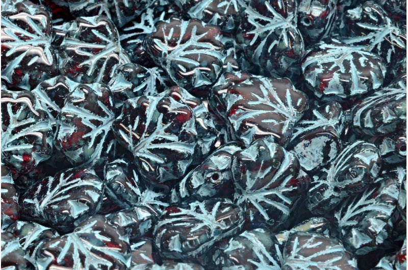 メープルリーフビーズ、ルビーレッドトラバーチンライトブルーライン(90080-86800-54308)、ガラス、チェコ共和国