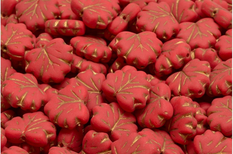 メープルリーフビーズ、不透明レッドゴールドラインマット(93200-54302-84100)、ガラス、チェコ共和国