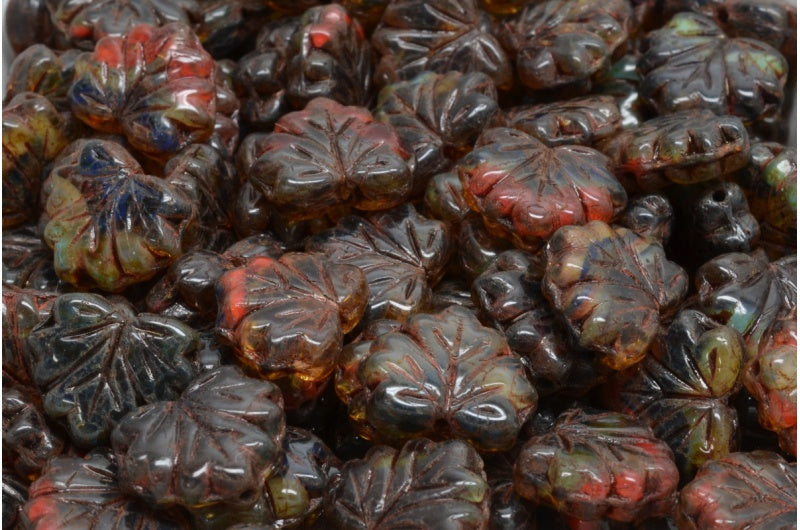 メープルリーフビーズ、ミックスカラートラバーチン(MIX-86800)、ガラス、チェコ共和国