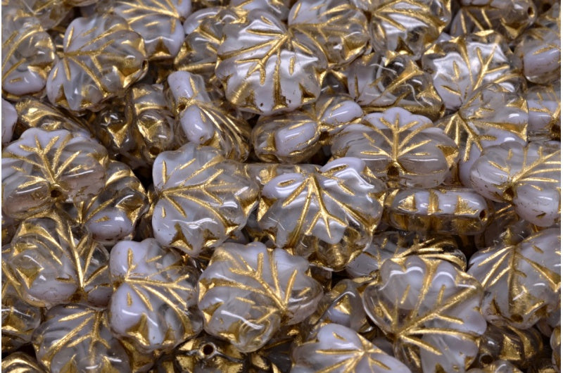 メープルリーフビーズ、バイオレットゴールドライン(R0240-54302)、ガラス、チェコ共和国