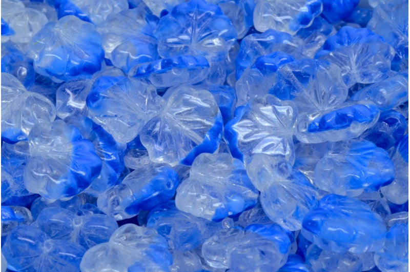 メープルリーフビーズ、ブルー(R0342)、ガラス、チェコ共和国