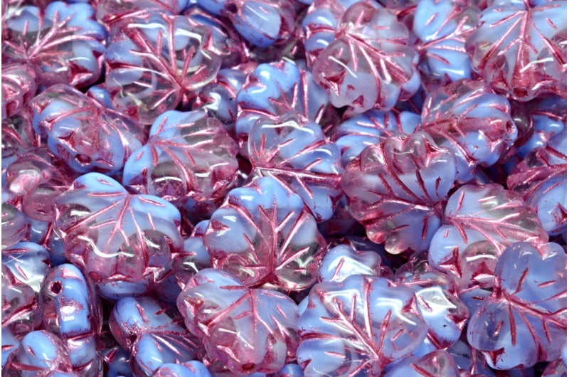 メープルリーフビーズ、ブルーピンクライン(R0342-54321)、ガラス、チェコ共和国