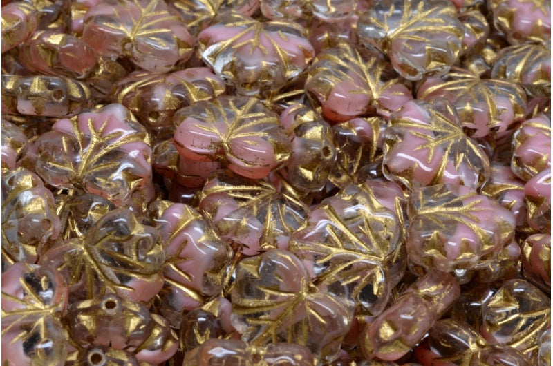 メープルリーフビーズ、ピンクゴールドライン(R0742-54302)、ガラス、チェコ共和国