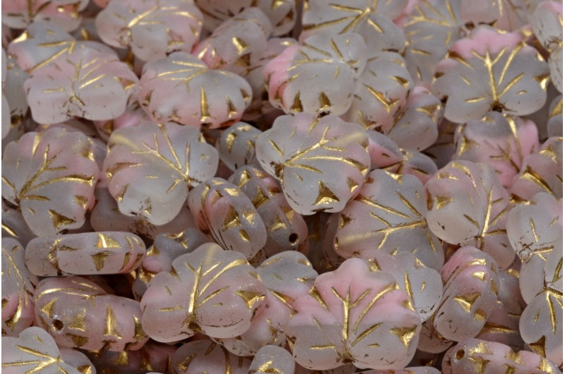 メープルリーフビーズ、ピンクゴールドラインマット(R0742-54302-84100)、ガラス、チェコ共和国