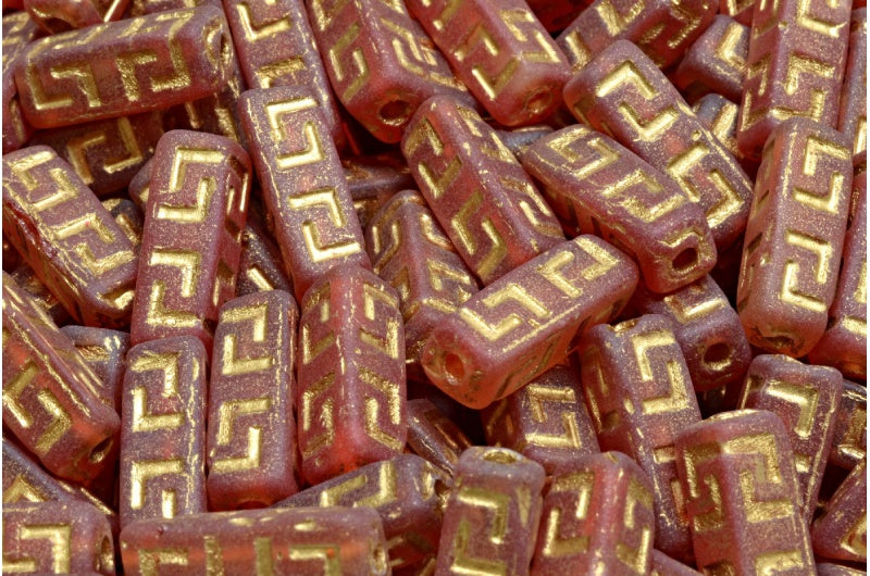 ケルトブロックビーズ、ホワイトレッドマットゴールドライン(R2908-84100-54302)、ガラス、チェコ共和国