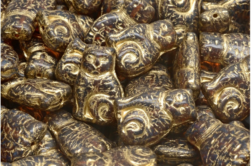 猫ビーズ、トパーズトラバーチンゴールドライン(10070-86800-54302)、ガラス、チェコ共和国
