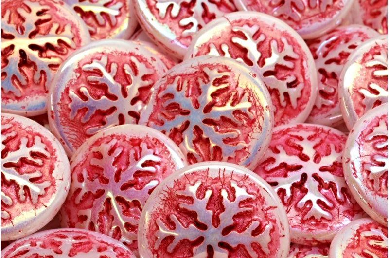 スノーフレークカボションビーズ、ホワイトAb 54327 (02010-28701-54327)、ガラス、チェコ共和国