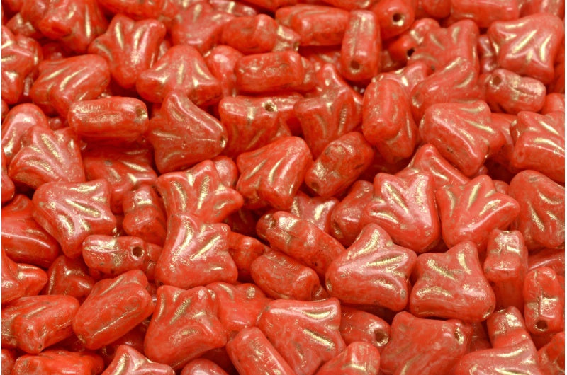 ユリの花のビーズ、白ベージュオレンジの斑点と金のライン(02010-33307-54302)、ガラス、チェコ共和国