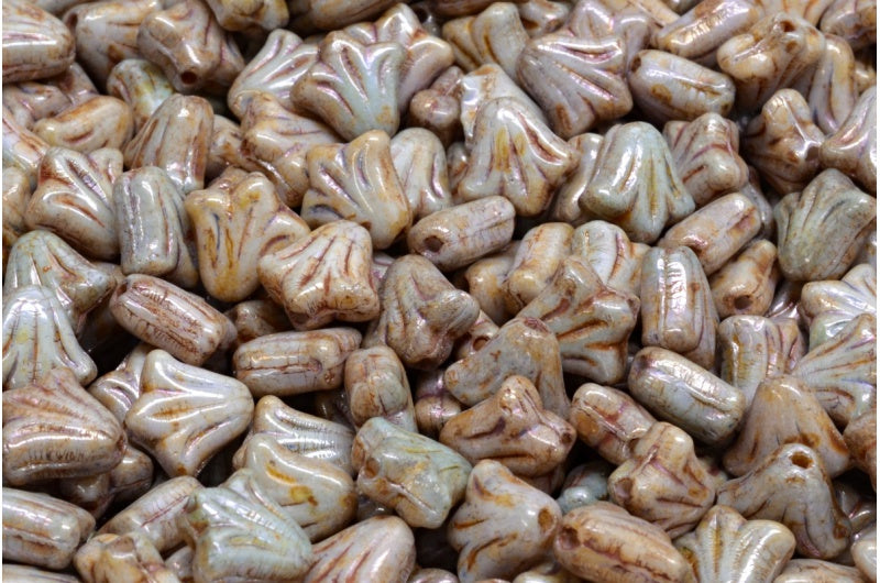 ユリの花のビーズ、白ステイン、光沢ブルー(02010-65431)、ガラス、チェコ共和国