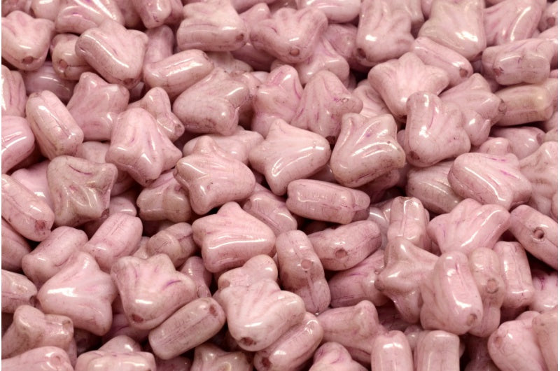 ユリの花のビーズ、白光沢リラ(02010-14494)、ガラス、チェコ共和国