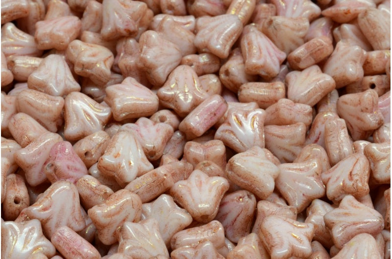 ユリの花ビーズ、ホワイトラスターレッドフルコーティング(02010-14495)、ガラス、チェコ共和国