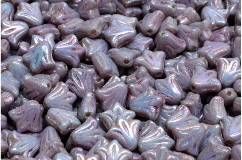 ユリの花のビーズ、白星雲(02010-15001)、ガラス、チェコ共和国