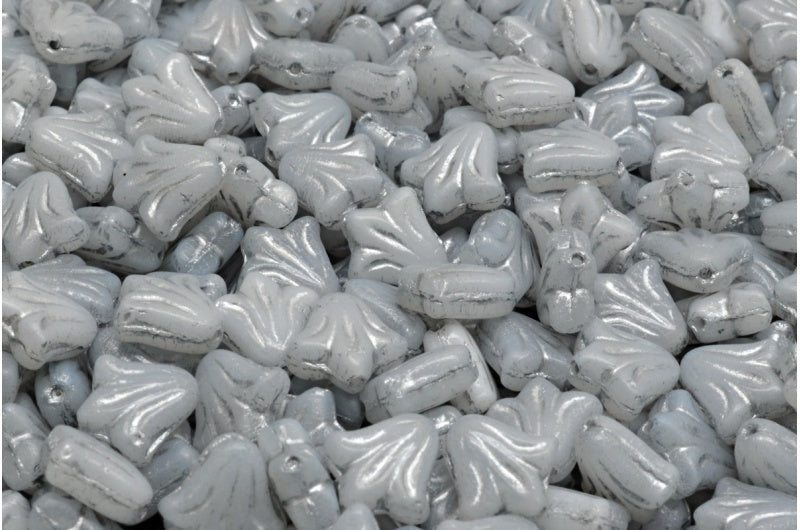 ユリの花のビーズ、ホワイトシルバーライン(02010-54301)、ガラス、チェコ共和国