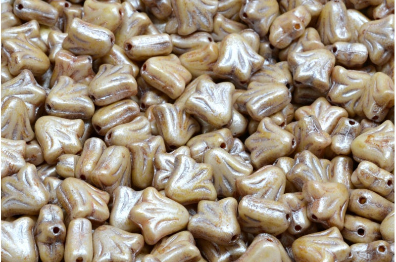 ユリの花のビーズ、白クリーム光沢斑点(02010-65321)、ガラス、チェコ共和国