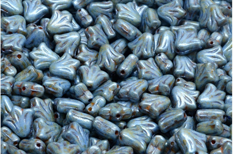 ユリの花のビーズ、白緑光沢斑点(02010-65325)、ガラス、チェコ共和国