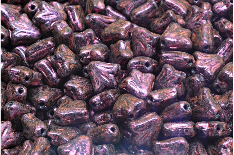 ユリの花のビーズ、黒と赤の虹彩(23980-86944)、ガラス、チェコ共和国