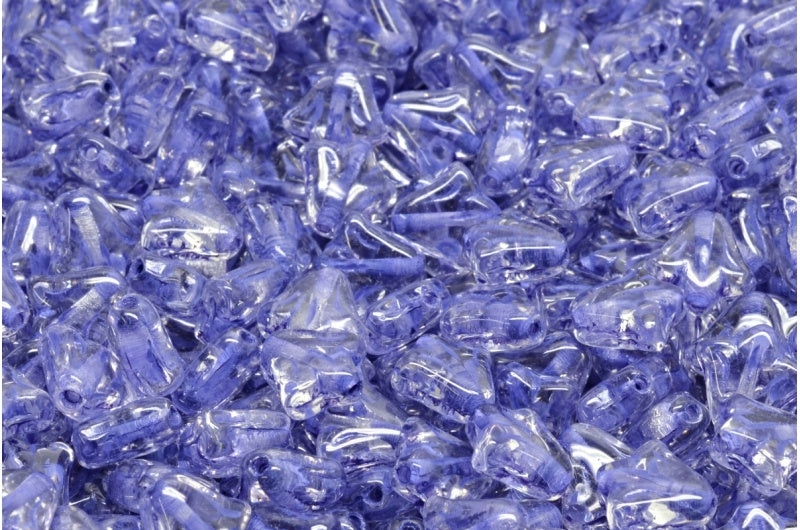 ユリの花のビーズ、クリスタルブルーのライン入り(00030-54325)、ガラス、チェコ共和国